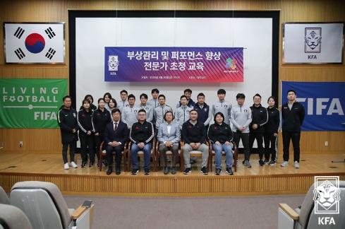 20일 파주 NFC에서는 부상 관리 및 퍼포먼스 향상 전문가 초청 교육이 열렸다. 이 날 교육에는 김판곤 KFA 부회장과 KFA 소속으로 활동 중인 피지컬 코치 6명, 의무트레이너 8명이 참석했다. 강사로는 현재 KFA 의무의원인 홍정기 차의과학대학교 스포츠의학대학원장이 나섰다. 홍정기 원장은 1971년생으로 역도 선수 경력이 있으며 아시안게임 금메달리스트이기도 하다. 한국체육대학교에서 스포츠의학 석사 학위를 받았고 미국 오레곤 주립대학교에서 운동과학박사 학위를 받았다.