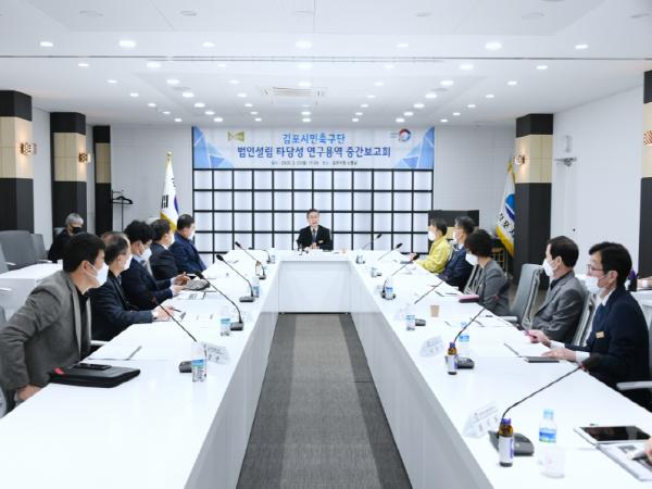 김포시(시장 정하영)는 지난 23일 소통실에서 김포시민축구단 법인설립 타당성 연구용역 중간보고회를 개최했다.