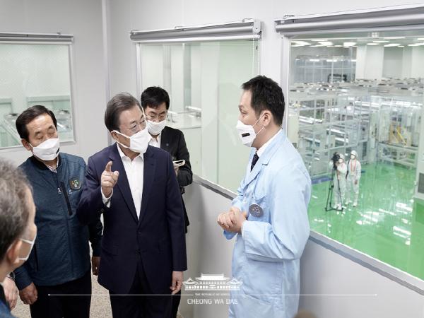 문재인 대통령은 불화폴리이미드 공장 생산라인을 돌아보며 이 부품이 적용된 폴더블 폰과 폴더블 노트북 등에 대한 설명을 들었다. 박효준 책임연구원은 "기술에 대한 자신감, 폴더블 폰 시장이 확대될 것이라는 확신과 함께 소재에서 국산화해야 한다는 과감한 투자로 현 양상 기계를 구축했다"고 말했다. 불화폴리이미드는 폴더블 디스플레이 보호 소재로서 일본이 시장을 독점하고 있었으나, 작년 하반기 국내 양산 능력을 확보했다.