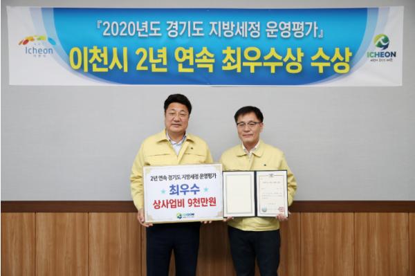 [더연합타임즈, 이광민기자] 이천시는 경기도에서 주관한 ‘2020년(2019년 실적) 지방세정 운영 평가’에서 지난해에 이어 2년 연속 최우수기관으로 선정돼 표창과 함께 시상금 9천만을 수상함에 따라 봉납식을 4월 1일 진행했다고 밝혔다.
