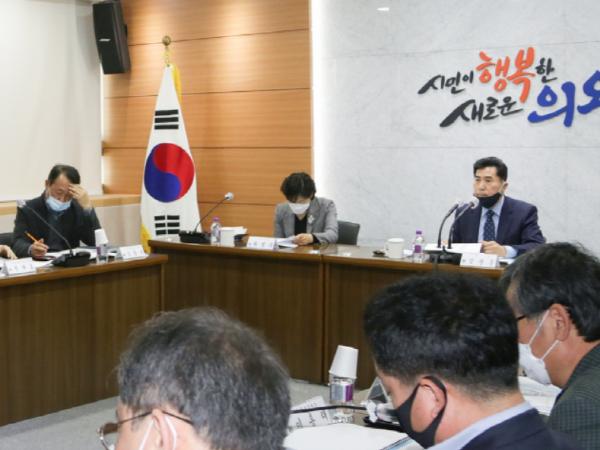 [더연합타임즈, 이광민기자] 의왕시는 7일 시청 소회의실에서 김상돈 시장, 송광의 시의회 부의장을 비롯한 관련 부서장 및 외부 자문위원 등 20여명이 참석한 가운데 ‘2030년 의왕시 도시 및 주거환경정비기본계획 수립’용역보고회를 개최했다.