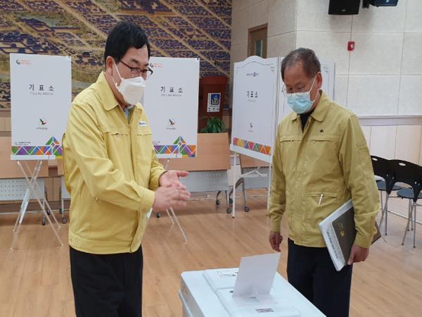 주 시장은 안강읍, 외동읍, 건천읍, 불국동 사전투표소를 직접 방문해 투표소 설비와 안전관리 상태 등을 점검하고 직원들을 격려했다. 아울러 본인확인과 투표용지 발급ㆍ수령 등 모의 사전투표를 직접 시연하며, 당일 현장에서 발생할 수 있는 정전이나 통신망 장애 등 돌발 상황대처 방안 등을 직접 점검했다.
