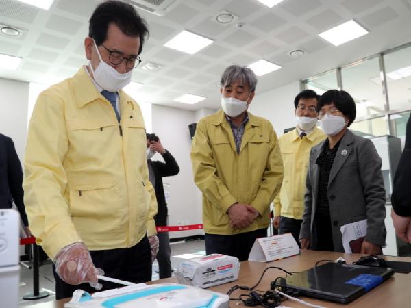 이 지사는 사전투표소 운용장비 설치 현황과 안전관리 상황을 점검하고 투표소의 장애인과 노약자 편의시설을 둘러봤다.