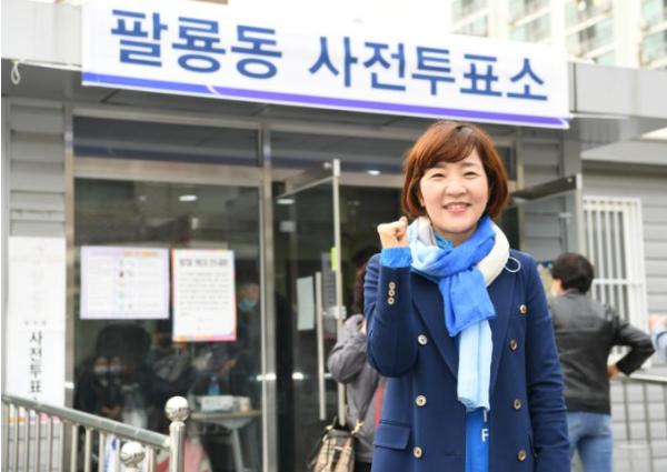 [더연합타임즈, 곽동근기자] 경남도의회 김지수 의장은 21대총선 사전투표 첫날인 10일 오후 창원시구. 팔용동주민센터 임시청사에 설치된 팔용동 사전투표소에서 소중한 한 표를 행사했다.