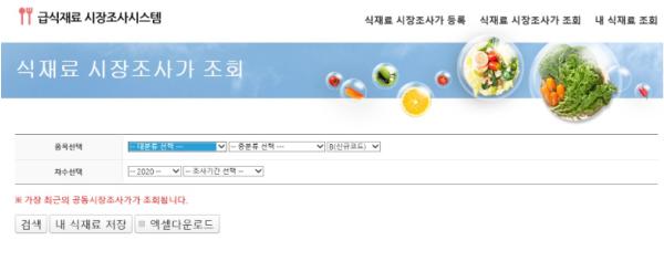 하지만 이제는 급식재료시장조사시스템에 입력된 전체 식재료 가운데 해당학교에서 필요한 식재료(300여종)만 선택하면‘내 식재료 관리(마이페이지)’메뉴에 자동 저장된다.