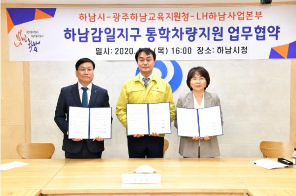[더연합타임즈, 이광민기자] 하남시는 감일지구 원거리 통학생을 대상으로 통학차량지원을 위해 지난 9일 하남시·광주하남교육지원청·LH하남사업본부와 업무협약을 체결했다