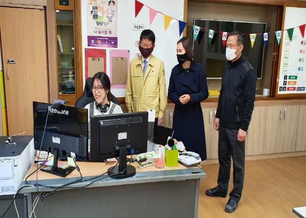 [더연합타임즈, 이시라기자] 영주교육지원청 김점섭 교육장은 4월 13일(월) 관내 이산초등학교를 방문하여 온라인 개학준비 상황을 점검하였다.