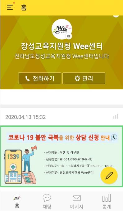 Wee센터는 카카오 채널 개설 및 게시판 상담을 운영하여 학생들의 온라인 상담 참여를 독려하고 있다. 온라인 상담이 어려운 학생을 위해서는 전화상담도 운영하고 있다. Wee센터 온라인 상담 운영 프로그램을 통해 교사, 학생, 학부모가 온라인 개학을 통한 불안감을 해소할 수 있다고 하였다.