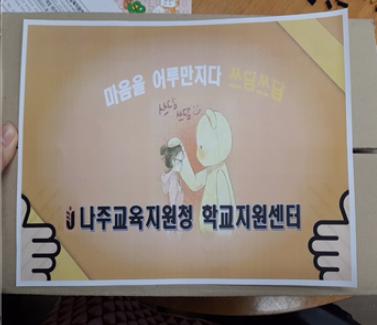 나주학교지원청(교육장 김영길)은 코로나19 대응 코로나 장기화와 온라인 개학에 따라 관내 초·중·고학교의 부적응 학생, 학교폭력 피해 학생 등 정서적 지원이 필요한 위기 학생에게 마음을 다독이는 정서지원 물품‘쓰담쓰담상자’를 전달하였다.