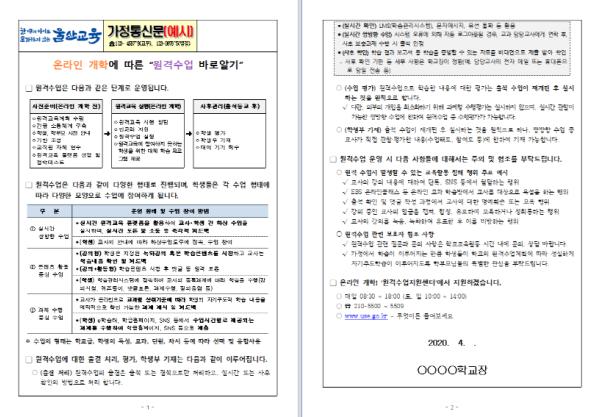 아울러, 원격수업에 대한 출결은 교과별 출석 또는 결석으로만 기록되고, 실시간 또는 사후 확인 방법으로 처리되며, 원격수업내용에 대한 평가와 학생부기재도 출석 수업이 재개된 후 실시하는 것이 원칙이라고 안내했다.