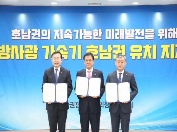 협의회는 또 정부에서 공모 중인 방사광가속기의 호남권(전남 나주) 유치를 위한 공동 건의문도 발표했다. 신약과 반도체 개발의 씨앗으로 평가되는 방사광가속기는 현재 호남권에만 전무한 상태다.