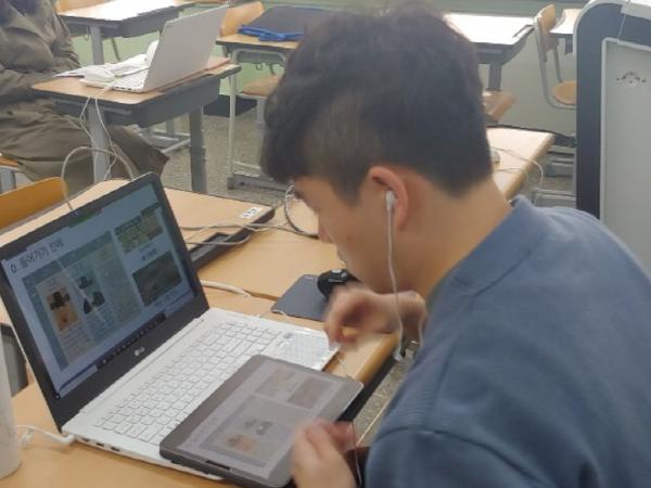 공식적인 이날 청평중학교 3학년 1교시 수업은 역사 수업이었다. 이기현 역사 교사는 ‘흥선대원군의 개혁정책’을 주제로 본인이 준비한 PPT 자료를 태블릿 PC를 도구로 쌍방향 실시간 수업을 진행했다. 이 수업에서 함께 짝을 이루어 학생들의 출결 관리를 맡은 박은정(사회) 선생님은 함께 수업에 참여하여 학생들의 출결 상태를 확인하고 수업에 진행하는 역사 과목 선생님을 보조하여 안정적으로 온라인 수업이 이루어지도록 도움을 주었다.