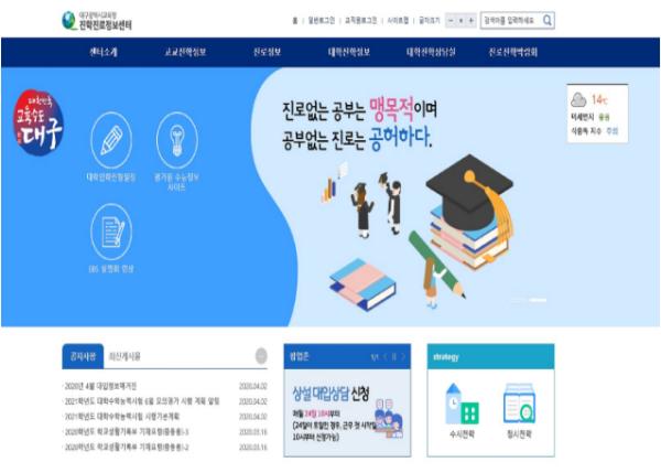 상담 신청 방법은 대구시교육청 진학진로정보센터(jinhak.dge.go.kr)에 접속해 휴대폰 인증을 거친 후, ‘대학진학상담실> 상설 대입상담 신청’ 메뉴에서 본인이 원하는 일시를 선택하면 된다.