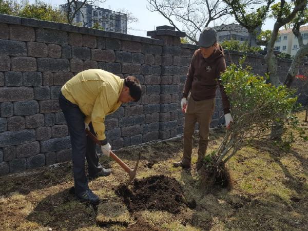 이날 도서관장을 비롯한 전 직원은 도서관 주변에 나무를 심고, 잔디를 가꾸며 도서관 주변 환경을 재정비하였다.