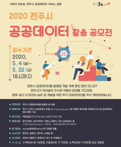 한편 공모전과 관련 기타 자세한 사항은 전주시 홈페이지(www.jeonju.go.kr)를 참고하거나 전주시 스마트시티과(063-281-2136)로 문의하면 된다.