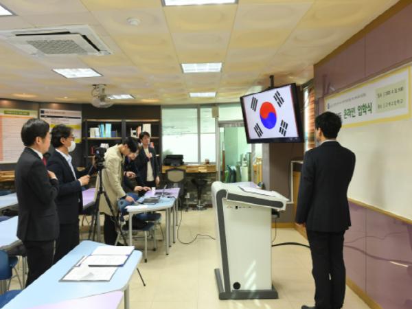 세계적인 전염병으로 인해 그동안 늦춰왔던 입학식을 온라인 개학에 맞춰 구글을 기반으로 해 학생들의 자택 및 고색고 진로진학카페에서 동시에 온라인으로 실시하였다.