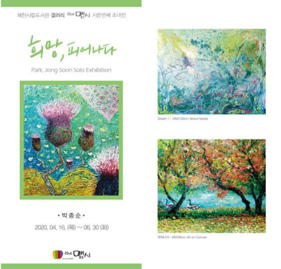 이번 전시회에는 지역에서 작품 활동을 하고 있는 박종순 작가의 작품이 전시되며 “희망, 피어나다”라는 주제로 다양한 회화 입체작품과 평면작품을 선보일 예정이다.