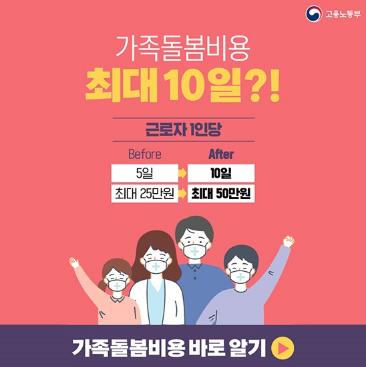 [더연합타임즈, 박덕환기자] 가족돌봄비용, 근로자 1인당 최대 10일까지 받을 수 있습니다.