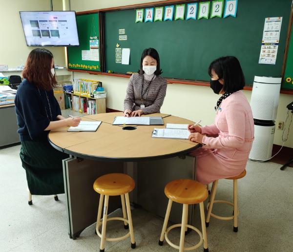 사상 초유의 온라인 개학은 수업의 형태에도 변화를 가져왔다. 지금 학교는 등교수업 맞춤형인 교수?학습 방법을 원격수업 맞춤형으로 전환하기 위해 다양한 콘텐츠와 활동과제?방법의 변화를 모색하고 있다. 초등학교 1~6학년에게 e학습터 주간학습내용을 안내하고, 특히 초등학교 1~2학년에게는 EBS 방송과 연계한 학습꾸러미를 자체 제작?보급한 점은 관내 학부모와 교사는 물론 타시?도에서도 자료 요청이 있을 정도로 많은 관심을 받고 있다.