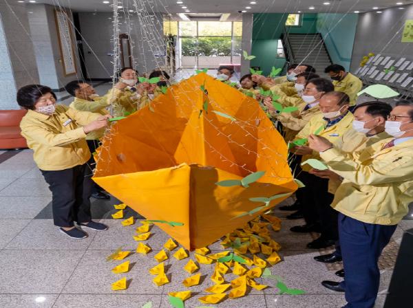 시교육청 1층 로비에서 세월호 추모 영상 관람을 시작으로, 청내 방송을 통한 세월호 사고 학생과 교사 등 모든 희생자들에 대한 추모 묵념, 추모와 새 희망을 담은 새싹 붙이기, 전시물 관람 등으로 이어졌다.