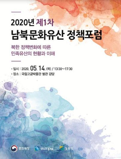 문화재청(청장 정재숙)은 경기도(이재명 경기도지사)·강원도(최문순 강원도지사)와 공동주최로 오는 14일 오후 1시 30분, 국립고궁박물관 별관 강당에서 ‘2020년 제1차 남북문화유산 정책포럼’을 개최한다.
