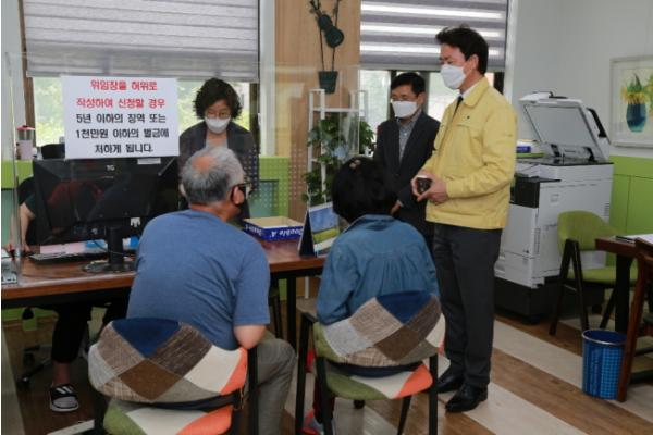 [더연합타임즈, 김순철기자] 김종천 과천시장은 긴급재난지원금의 방문 접수가 시작된 18일 관내 6개 동주민센터 등 방문 신청 현장을 찾아 동 직원들을 격려하고, 코로나19로 인한 시민의 어려움과 코로나19 극복을 위한 의견을 청취하는 시간을 가졌다.