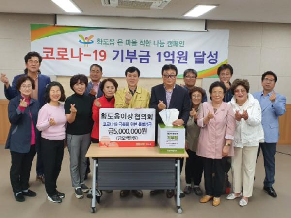 화도읍은 지난 18일 화도읍 이장협의회가 정부 긴급재난지원금 500만원을 추가로 기탁하면서 총 1억135만원의 기부금이 모금되어 당초 목표했던 금액 1억원을 초과 달성했다.