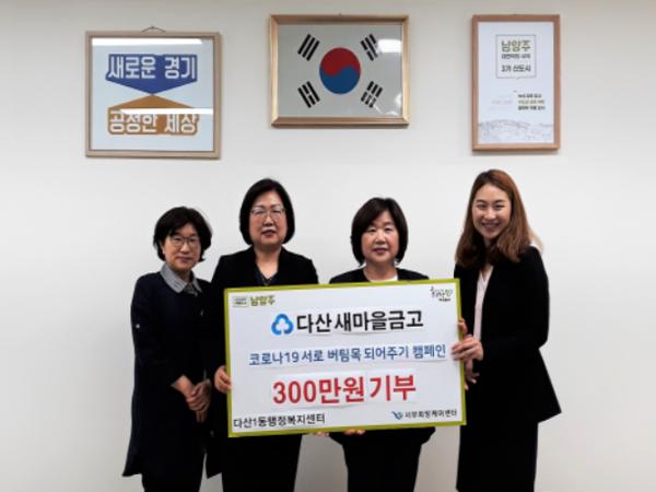 [더연합타임즈, 박덕환기자] 남양주시 다산새마을금고(이사장 김옥진)는 19일 다산행정복지센터(센터장 박세정)를 방문해 코로나19 극복을 위한 특별성금 300만원을 전달했다.