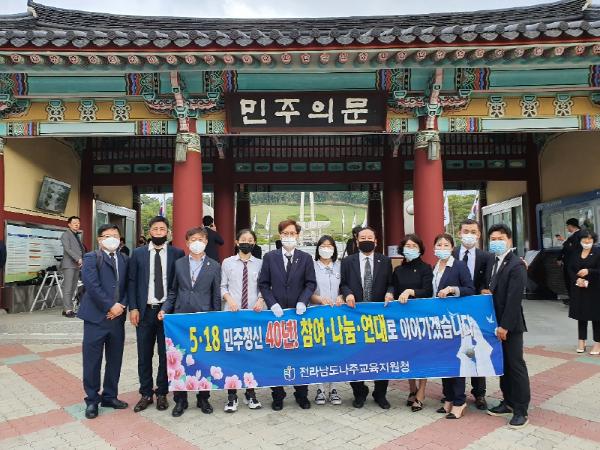 오전 행사에 이어 오후에는 학생 연합회 대표, 교육참여위원회위원장, 교육지원청 직원들과 함께 국립 5·18 민주묘지를 참배하였다. 나주교육지원청 교육장(김영길)은 방명록에‘5·18민주정신 참여·나눔·연대로 이어가겠습니다’라고 글을 남겼다. 이날 참배는 5·18 희생자들을 추모하며 숭고한 5월 정신을 기리며, 민주시민의식과 공동체 정신을 계승·실천하기 위해 이뤄졌다.
