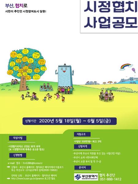 [더연합타임즈, 장종훈기자] 부산시는 시정협치의제로 결정된 36개 의제에 대해 5월 18일부터 3주간 시정협치 사업공모에 나선다고 밝혔다.