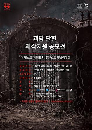 부천시(시장 장덕천)와 부천국제판타스틱영화제(집행위원장 신철, 이하 BIFAN)는 ‘괴담 단편 제작지원 공모전 - 유네스코 창의도시 부천스토리텔링대회’를 개최한다. 괴담을 소재로 한 단편 영화·웹드라마의 시나리오와 3분 이내의 영상이 공모 대상이다. 심사를 거쳐 최종 선정한 20편에는 총 1억 원을 지원한다.