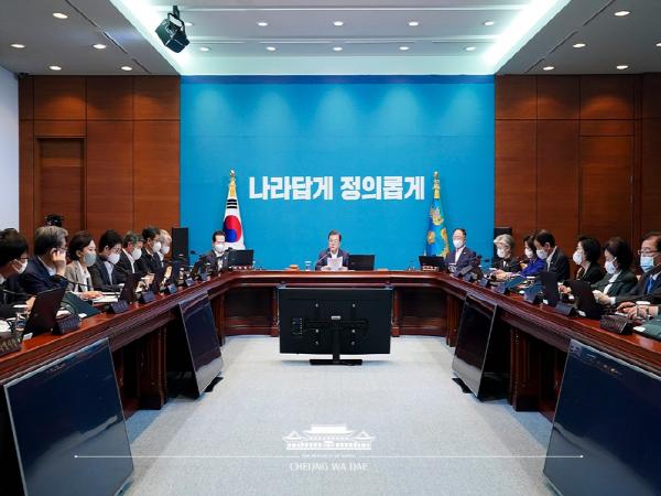 [더연합타임즈, 김현준기자] 문재인 대통령은 오늘 오전 청와대 여민1관에서 세종 국무회의실과 영상회의 방식으로 열린 제27회 국무회의를 주재했다. 오늘 국무회의에서는 <아동·청소년의 성보호에 관한 법률 일부개정법률 공포안> 등 법률 공포안, <채무자 회생 및 파산에 관한 법률 시행령 일부개정령안> 등 대통령령안, <2019회계연도 기금운용평가 결과> 등 보고안건 등이 심의·의결되었다.
