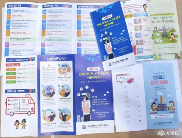 충남소방본부(본부장 손정호)는 영어, 중국어 등 8개 외국어로 번역된 ‘외국인 119신고요령’ 홍보물을 제작·배부했다고 밝혔다.