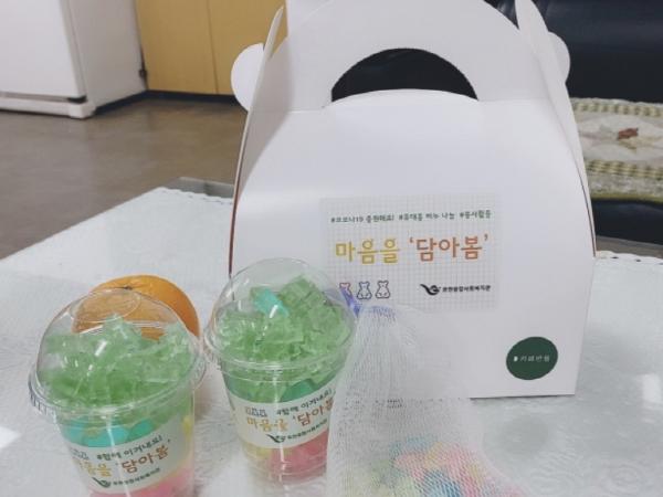 비누 재료가 들어있는 키트를 비대면으로 전달해 50명의 청소년 자원봉사자들이 각 가정에서 휴대가 용이한 작은 크기의 비누 100개를 제작했다. 이 비누는 포천 지역 내 독거어르신, 조손가족 등의 저소득 가구에게 전달할 예정이다.