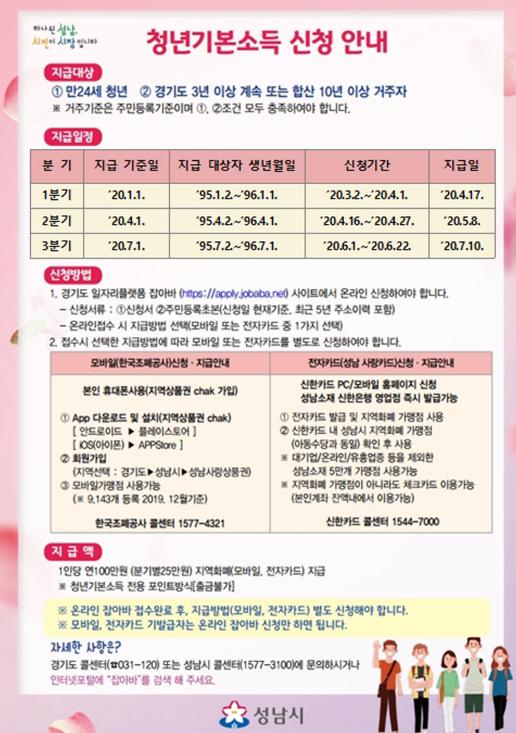 [더연합타임즈, 장운조기자] 성남시는 오는 6월 22일까지 올해 3분기 청년기본소득(옛 청년배당) 지급 신청을 받는다.