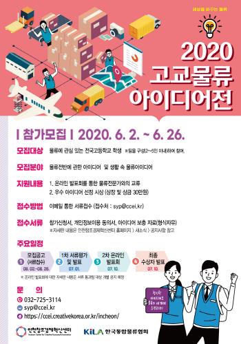 [더연합타임즈, 이지훈기자] 고등학생들의 물류에 대한 인식을 제고하고 물류 창업생태계에 대한 관심 증진을 위해 인천창조경제혁신센터가 주최하고, 한국통합물류협회와 함께 주관하는 2020년 제3회 고교물류 아이디어전이 개최된다.
