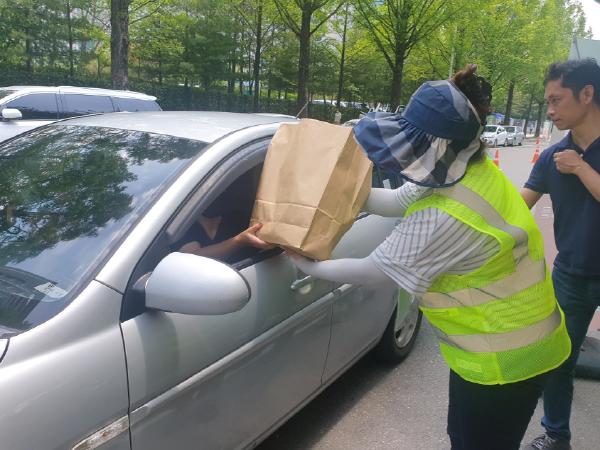 [더연합타임즈, 강기정기자] 대전시기 코로나19 대책으로 지역농가를 돕기 위해 드라이브 스루 방식으로 한밭가득 로컬푸드 판매행사를 진행하고 있다