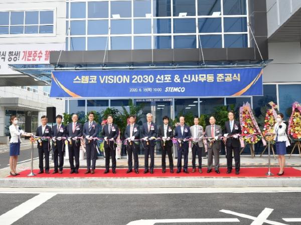 이날 비전선포식은 스템코(주)가 2030년 매출 1조원 달성이라는 비전과 함께 ‘Let’s F.L.Y STEMCO!’ 라는 슬로건을 제시하였으며, 한계를 뛰어넘는 혁신을 통해 첨단기술 개발의 선도적 역할을 수행하고 글로벌 세계1위를 향해 더 높이 비상하는 다짐을 담아 개최하였으며, 이와 함께 연면적 2,080.05㎡규모로 완공된 소통공간인 사무동 준공식을 개최했다.