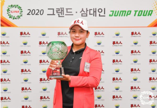 [더연합타임즈, 임경복기자] 6월 18일(목), 충북 청주에 위치한 그랜드 컨트리클럽(파72/6,114야드) 남코스(OUT), 서코스(IN)에서 열린 ‘KLPGA 2020 그랜드-삼대인 점프투어 4차전’에서 김희지(19)가 생애 첫 우승컵을 들어 올렸다.