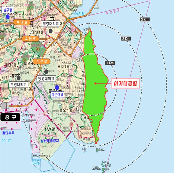 부산시는 이기대공원을 현행 ‘자연녹지지역’에서 ‘보전녹지지역’으로 용도지역을 전면 변경한다.