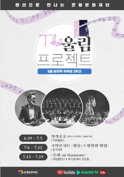 은평문화재단에서 주최·주관하는 비대면 온라인 공연 'The 울림 프로젝트'는 은평문화재단 유튜브 채널과 네이버TV, 은평인터넷방송(EBN) 채널에서 무료로 관람할 수 있으며, 공연영상은 각각 일주일간 공개된다.