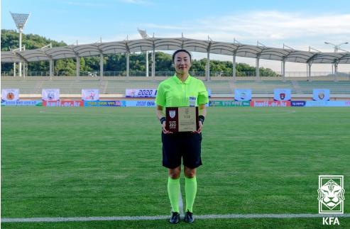 부심을 맡아 국제심판으로도 활약하고 있는 양선영 심판은 22일 보은공설운동장에서 열린 2020 WK리그 2라운드 보은상무와 경주한국수력원자력 경기에 출전함으로써 영광의 주인공이 됐다.