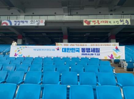 KBO와 KBO 소속 두산·LG·키움·KT·한화·삼성·롯데·기아·SK·NC 등 전체 구단은 부산 사직야구장에 현수막 설치를 시작으로 주요 야구장 9곳에 대형 현수막을 설치해 ‘대한민국 동행세일’ 캠페인 홍보에 주도적으로 나섰다.