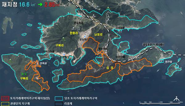 경남도는 지난 5월 28일 2020년도 제4회 경상남도 도시계획위원회의 심의를 거쳐 토지거래계약에 관한 허가구역을 재지정하고, 토지거래계약 허가구역 재지정 사항을 경상남도 홈페이지에 공고하였다. 또한, 재지정에 관한 자세한 사항은 창원시 해양사업과에서 열람할 수 있도록 하였다.