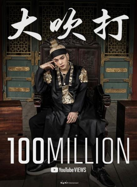 5일 소속사 빅히트 엔터테인먼트에 따르면, 지난 5월 22일에 공개된 '대취타' 뮤직비디오는 전날 오후 10시40분께 유튜브 조회 수 1억 건을 넘어섰다. 이로써 슈가는 '어거스트 디(Agust D)'에 이어 '대취타'로 두 번째 1억 뷰를 달성했다.