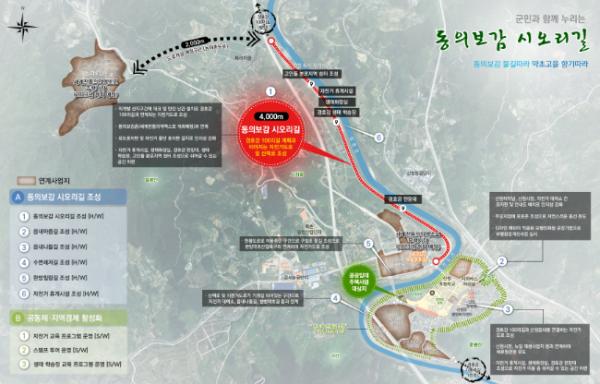 포토존을 설치하고 사진전시회 등 다양한 문화컨텐츠를 개발하여 재미있고 특색 있는 읍내마중길로 조성할 계획이며, 그 외 주변 경호강을 활용한 자전거도로도 만들어진다. 도는 동의보감 시오리길이 의학엑스포의 성공적 개최와 다양한 계층의 관광객 유치에 따른 지역경제 활성화에 크게 기여할 것으로 기대하고 있다.