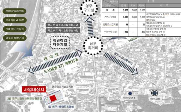 선정된 사업과 관련해 영주시에서 추진하는 ‘폐산업시설활용 지역항공 산업 플랫폼 구축사업’은 폐산업시설을 활용해 항공산업 거버넌스 및 항공체험센터를 구축하는 사업으로 지역유일의 항공체험센터이며, 향후 영주시의 항공산업플랫폼 구축의 중추적인 역할을 할 것으로 기대 되며 총사업비 35억원(국비20억 지방비15억)이 투입될 예정이다.