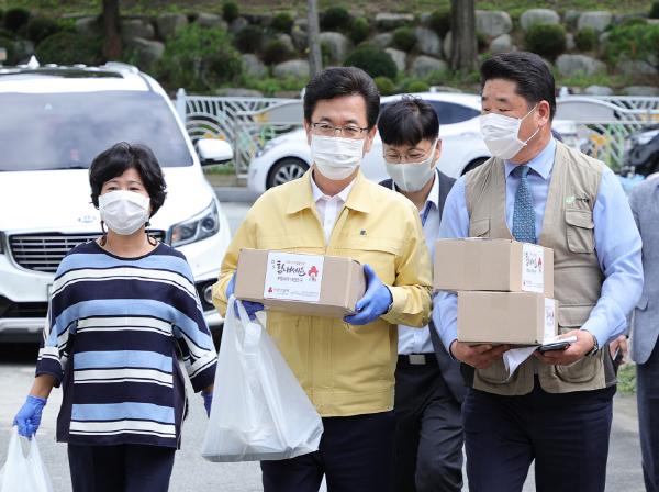 허태정 시장은 복지관 휴관 중에도 홀로계신 어르신들의 건강과 돌봄이 필요한 분들을 위해 노력하고 있는 복지관 직원들에게 감사한 마음을 전달하며 격려했다.