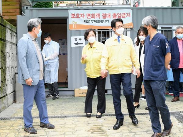 먼저 최 시장은 7월 1일 코로나19에 맞서 시민의 안전을 위해 밤낮으로 노력하는 병원 의료진들을 찾아 현장을 살피고 의료 관계자 및 시민들의 의견을 청취했다. 지난 2월 26일부터 국민안심병원을 운영하고 선별진료소를 운영하고 있는 메디인병원과 도보이동진료소가 설치된 파주시보건소, 해외입국자 임시생활시설로 사용 중인 현대자동차 인재개발센터 파주캠퍼스를 순차적으로 방문했다.