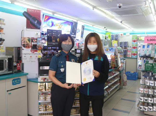 부천소사경찰서(서장 이경자)는 지난 17일, 보이스피싱 범죄를 막은 편의점 점주 A씨에게 감사장을 전달했다.